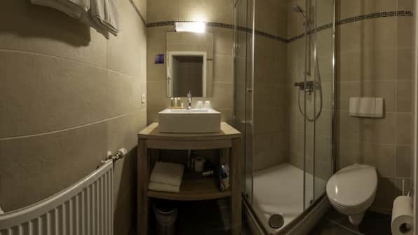 Badezimmer mit: Dusche und Toilette