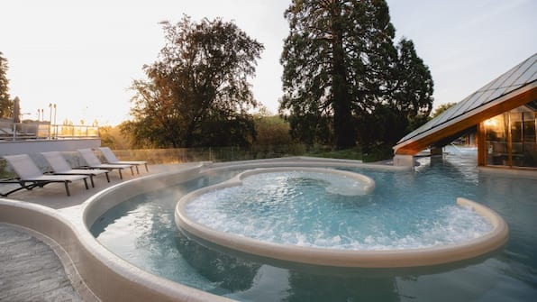 Gelegentlich kann es zu Schwellen oder kleinen Stufen kommen. Wenn Sie im Rollstuhl sitzen, ist es wichtig, dass Sie eine Begleitperson zur Unterstützung mitbringen. Es gibt einen Hebelift für das separate Übungsbecken und die Thermalbäder, spezielle Umkleide- und Duschräume, und Sie können mit dem Behindertenparkausweis an der Hotelrezeption parken. Ein Teil der Einrichtungen ist für Rollstuhlfahrer nicht zugänglich.